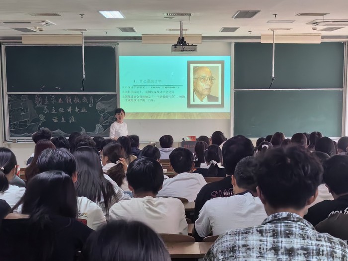 统计系主任孙慧慧老师,面向新生对专业内涵和就业方向进行介绍,对学习难度、课程内容做了提示。她同时还介绍了学院应用统计、金融统计、电话调查实验室等学科相关的教学设施情况。希望新生学好专业知识,树立考研志向。积极参与“全国老员工市场调查与分析大赛”等学科竞赛,为今后求职简历积累精彩亮点。