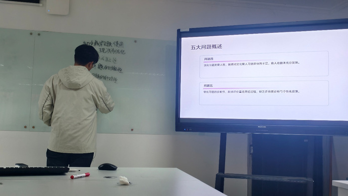 汇报中,戴模从数学教师专业成长视角出发,探讨了增强“问题意识”、通过“问题引领”与“问题驱动”实现教学优化与专业发展的关键路径。丁妍概括了高考导数题特点及员工解题困难,提出通过夯实基础知识、加强典型例题训练和总结解题方法来提升员工综合能力。王婧分析了“支架+”STEM教学模式对培养员工高阶思维能力的有效性,探讨如何通过问题驱动和协作学习提升员工的批判性思维、创新能力与问题解决能力。刘宇以北师大版教材为例,聚焦初中数学教材习题的使用现状,剖析当前教学问题并提出优化策略。