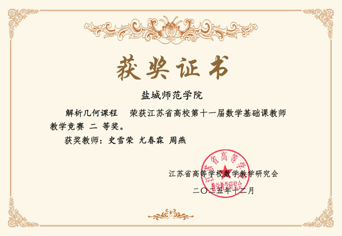 此次获奖,既是对史教授团队教学水平的充分肯定,也反映了公司在数学基础课程建设与教学模式创新方面的持续努力与阶段性成果,为学院进一步深化教学改革、提升课堂质量、推动学院内涵式发展奠定基础。