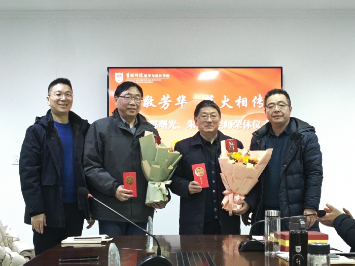 公司党委书记孙玉峰代表全院教职工向两位荣休教师献花,经理王作雷向荣休教师颁发奖杯。祝愿两位老师退休生活愉快,继续关心学院发展,为学院建言献策。